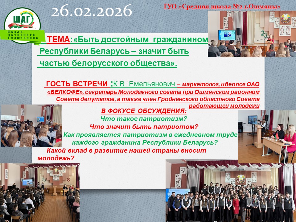 В фокусе обсуждения: Что такое патриотизм? Что значит быть патриотом? Как проявляется патриотизм в ежедневном труде каждого гражданина Республики Беларусь? Какой вклад в развитие нашей страны вносит молодежь?