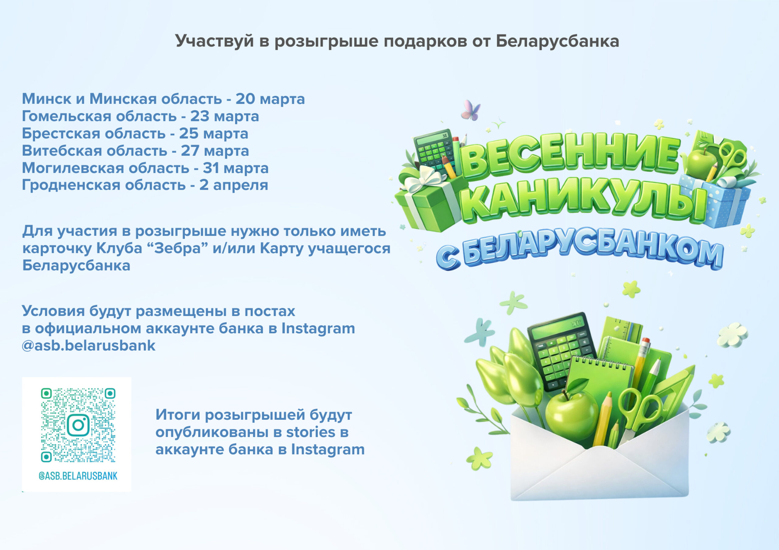 Принимай участие в розыгрыше подарков от БЕЛАРУСБАНК’а Для участия нужна только «Карта учащегося»